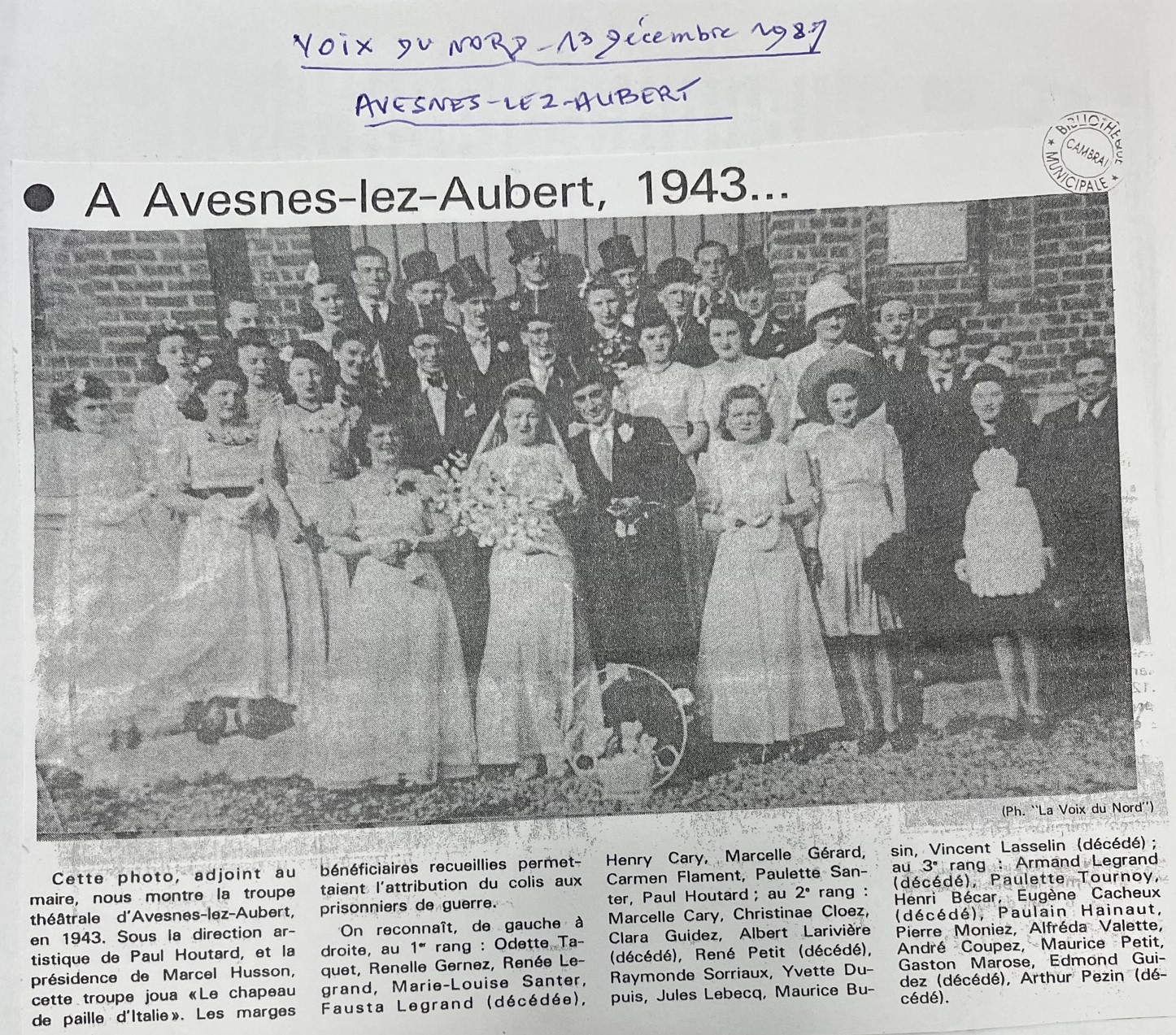 - Solange MERESSE NOTEBAERT, « Bal des conscrits et danses d’honneur à Avesnes-lez-Aubert », Jadis en Cambrésis n°78, mai 2002.