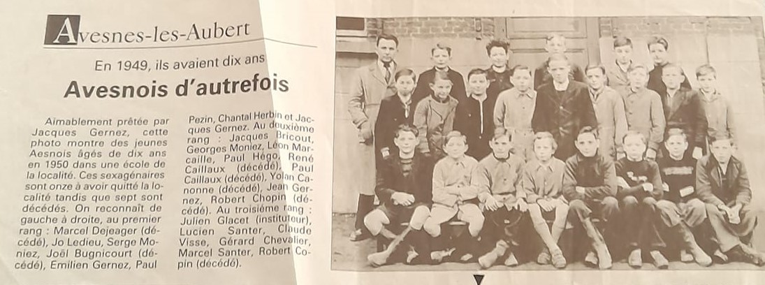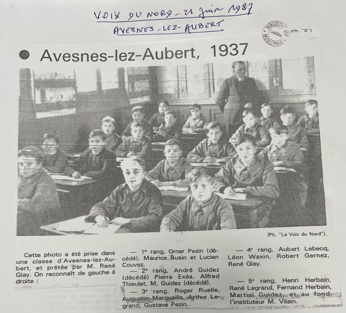 Photo de classe des enfants nés en 1929-1930 1935-1936Avesnes-les-Aubert, 1937 21/06/1987Avesnes-les-Aubert, 1938 30/08/1987Photo de classe des enfants nés en 1939 vers 1946 1946-1948Photo de classe en 1949 1949Photo de classe en 1951 1951Photo de classe des enfants nés en 1938 vers 1952Photo de classe des enfants nés en 1938 vers 1954Photo de classe des enfants nés vers 1946 vers 1956