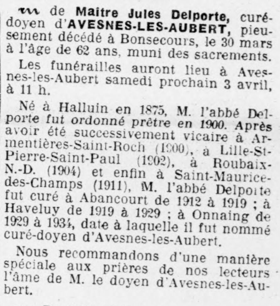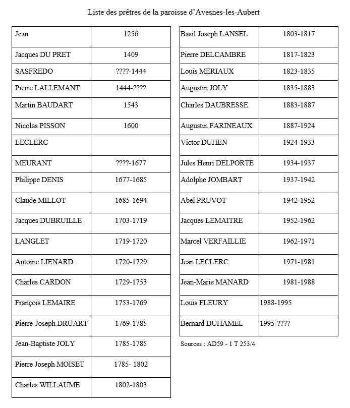 Prêtres originaires d'Avesnes-les-Aubert