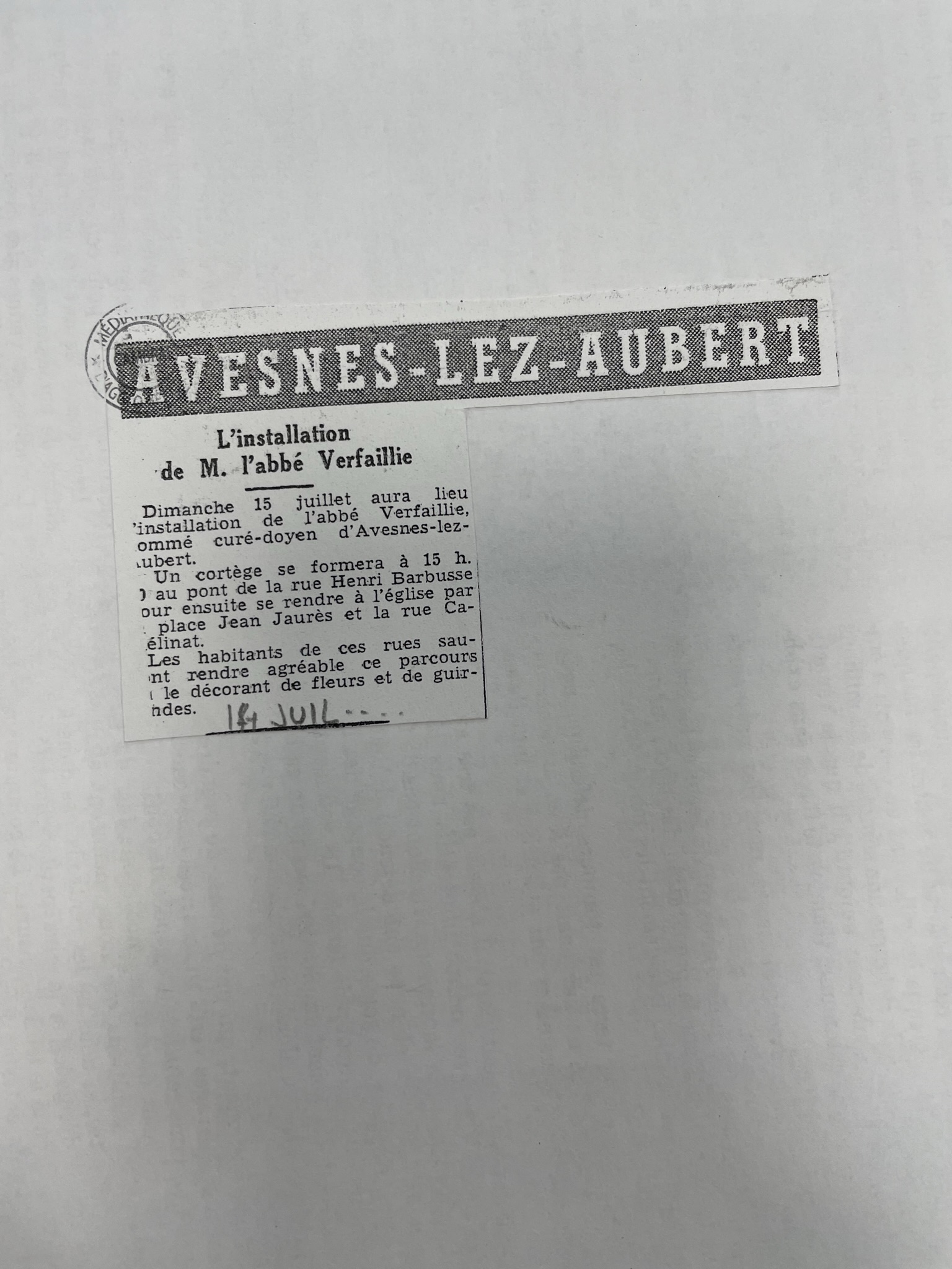 Liste des prêtres Martin Brudart curé de céent 1543Funérailles de l'abbé Augustin Farineaux 05/08/1924Funérailles de l'abbé Augustin Farineaux 09/08/1924Mort du chanoine Duhen curé-doyen d'Avesnes-les-Aubert 12/12/1933La mort de M. le chanoine Duhen 14/12/1933Funérailles du chanoine Victor Duhen 17/12/1933Décès du curé-doyen Jules Delporte 31/04/1937Nomination Adolphe Jombart 18/04/1937Abel Pruvot Installation de l'abbé Verfaillie 14/07/1962Décès de l'abbée Jean-Marie Manard 2016Jean-Marie Manard