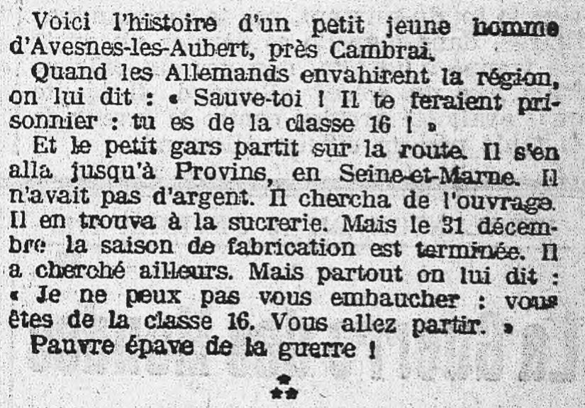 Jeune homme d'Avesnes-les-Aubert pendant la guerre