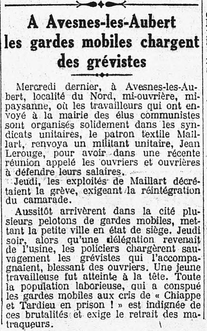 A Avesnes-les-Aubert les gardes mobiles chargent des grévistes