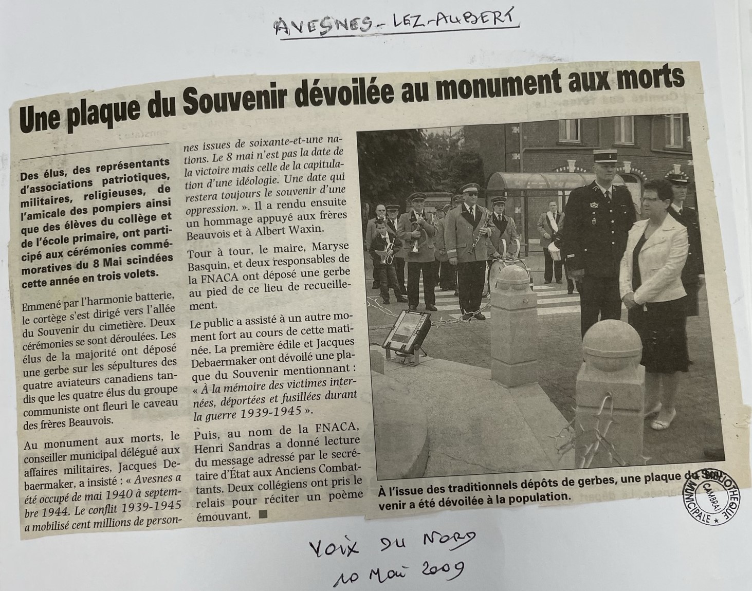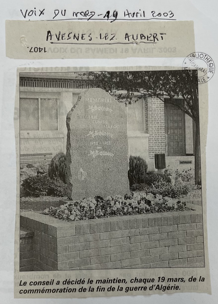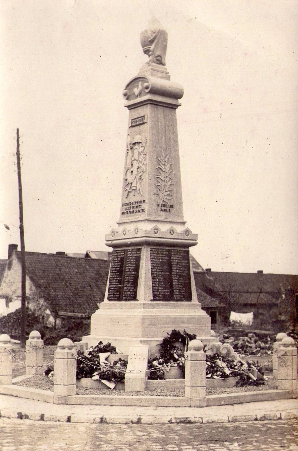 Le monument aux morts a été construit en 1920 aprÚs la fin de la PremiÚre guerre mondiale qui a emporté 155 soldats avesnois et de nombreux civils. Lors de son inauguration, sous celui-ci, les reliques de 11 soldats morts pour la France sont déposées dans une boite en zinc. Sur les quatre faces du monument, figurent les noms et prénoms des 155 soldats avesnois tombés lors de la guerre 1914-1918 et de 20 soldats lors du conflit de 1939-1945. Une nouvelle plaque en mémoire aux victimes déportées, internées, fusillées pendant la DeuxiÚme guerre mondiale est apposée en 2009, pour la commémoration du 8 Mai. Sur le mur extérieur de l'église figurent les noms des 8 soldats avesnois tués lors de la guerre de 1870/1871. Tout prÚs, une stÚle est dédiée à la mémoire des anciens combattants d'Afrique du Nord, Algérie, Tunisie et Maroc.