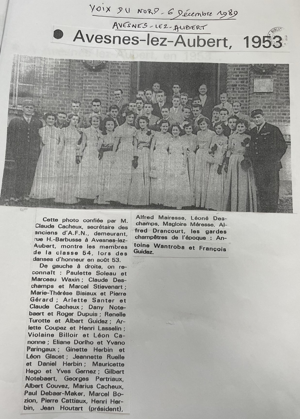 - Solange MERESSE NOTEBAERT, « Bal des conscrits et danses d’honneur à Avesnes-lez-Aubert », Jadis en Cambrésis n°78, mai 2002.