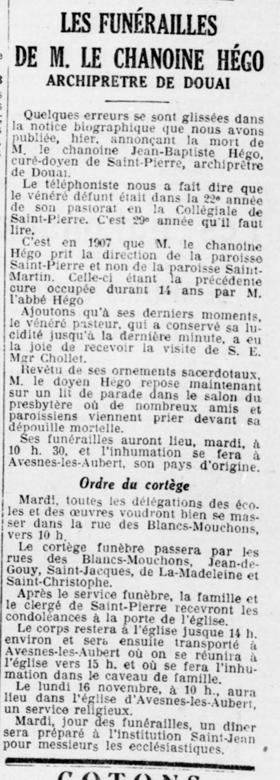 Jean-Baptiste Hégo 1854-1936Mort du chanoine Jean-Baptiste Hégo 07/11/1936Funérailles du chanoine Hégo 08/11/1936L'abbé Marose 22/03/1949
