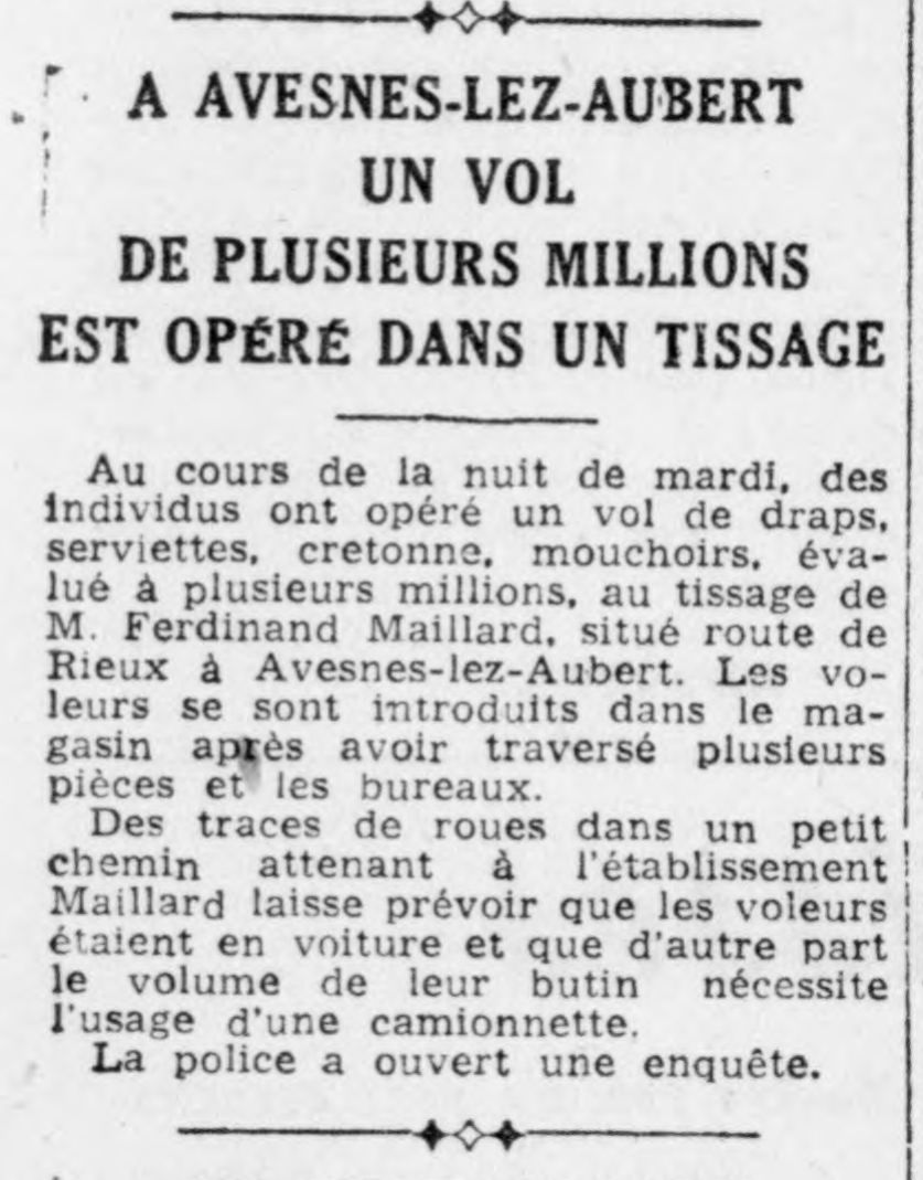 Un vol de plusieurs millions est opéré dans un tissage