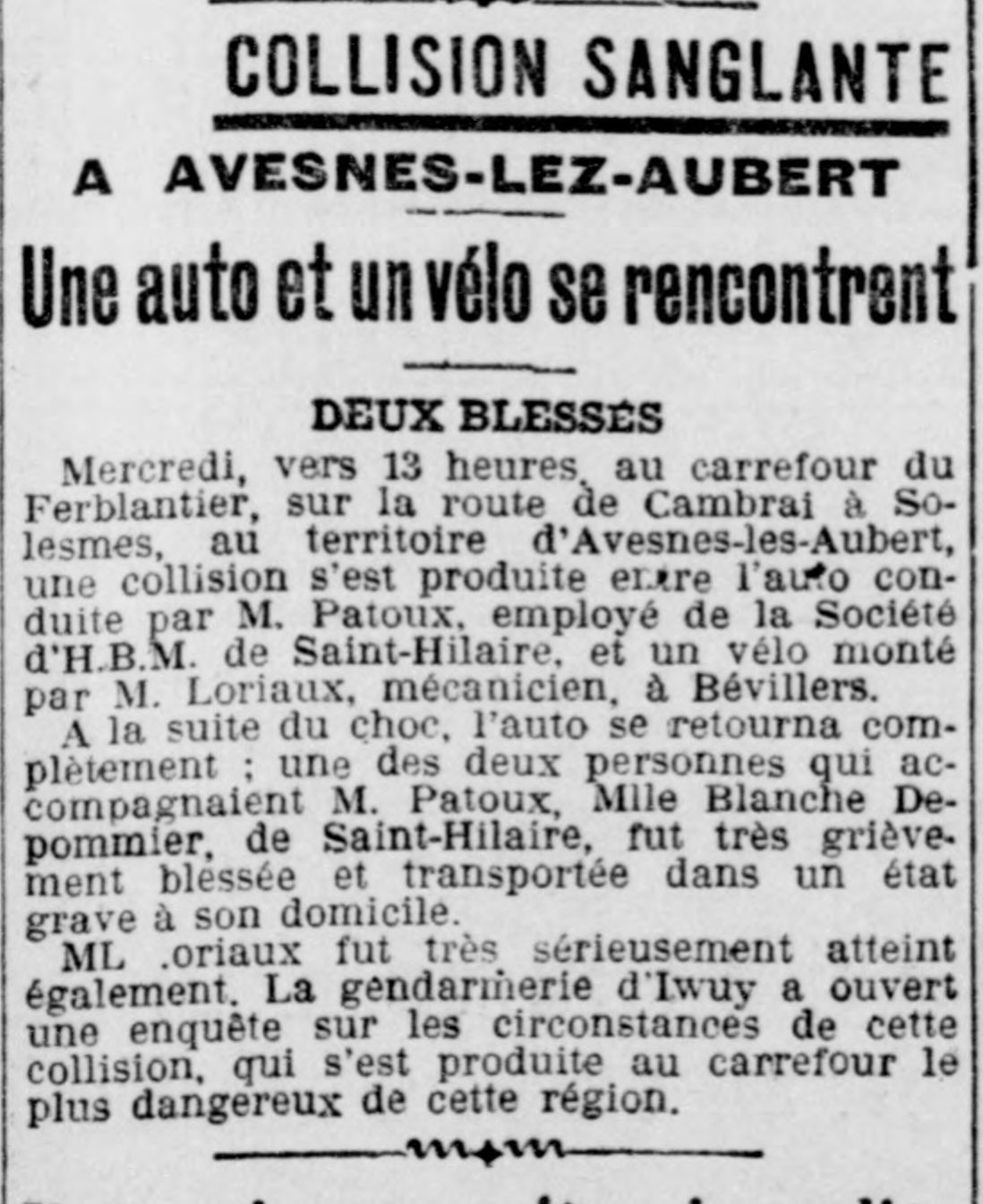 Une scène dramatique à Avesnes-les-Aubert