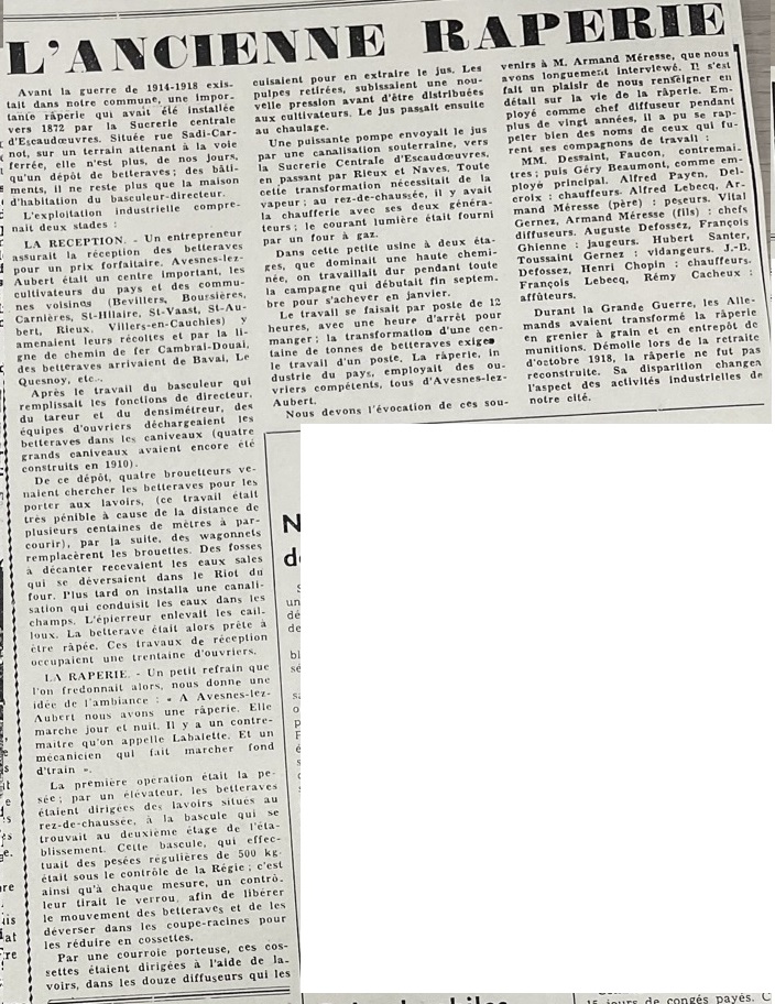 - Marie-ThĂ©rĂšse PERTRIAUX, « Lâindustrie sucriĂšre dans le CambrĂ©sis - Les betteraviers dâAvesnes-les-Aubert », Jadis en CambrĂ©sis n°17, 1982.